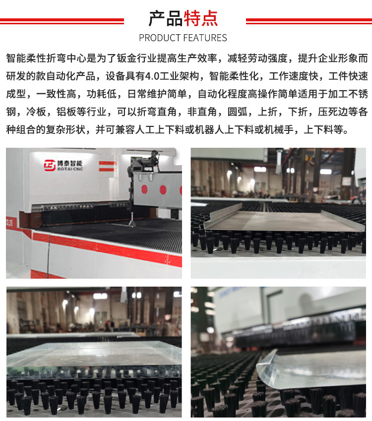 多軸聯動加工,零件在一臺數控折彎機機床上一次裝夾后,可進行自動換刀、旋轉主軸頭、旋轉工作臺等操作,完成多工序、多表面的復合加工,不僅光潔度高,而且效率也大幅度提高。