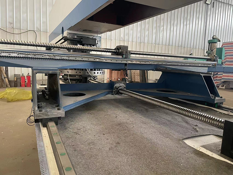 ⑴沖床設備在出廠前設計與加工的模具對中性差。模位孔對中性不好,會使模具在使用過程中發生碰撞和摩擦,目前國內一線水平的數控沖床生產廠家的模位對中精度也只能控制在0.02mm,模位對中精度能夠達到0.01mm級別的很少,模具模位的對中性不好直接損害到模具。⑵模具材料性能差。高速運轉的過程中,材料不好易發熱不均導致變形。⑶潤滑。在高速使用過程中,模具長期與模座或者導向孔接觸,模具在上下運動的過程中,機床會發生一些傾斜振動,模具與模座或者導向孔摩擦損傷模具以及機床。⑷使用環境。充滿灰塵的工作環境會使得模具內部不干凈,會導致模具卡死不回彈,甚至將沖頭崩斷,這是非常危險的。⑸加工板材偏薄或者偏厚。一般數控沖床的沖壓厚度為0.8~6mm,如若一直在臨近0.8mm或者6mm的情況下工作,模具精度會受到影響。⑺加工工序的優化不到位。很多用戶在使用數控沖床時,編寫加工工藝存在問題,使得模具切割面的一半甚至不到一半的切割面接觸到工件,這樣的邊緣加工工藝會直接導致模具崩刀。一般說來普通模具壽命是30萬次左右,進口高速鋼是50萬次左右,影響數控轉塔沖床模具使用壽命的原因中最直接的就是板料越厚、材料越硬,模具壽命就會越短。如果數控沖床沖壓的是大孔徑厚板,就需要精確計算所需要的沖裁力。因此在大工位上沖壓加工比較厚的板料時,需要采用公式⑴:沖壓力(kN)=沖壓孔的周長(L)×材料厚度(T)×0.345×材料因數(F)×剪切因數(S)⑴。模具安裝好后,要邊轉動轉塔沖床,邊觀察上下轉塔之間,特別是凹模有沒有高低不平。注:當刃口不是斜刃口時,剪切因數為100%,正方模具40mm×40mm,板厚3.0mm,對冷軋板進行平刃口沖孔。沖壓力(kN)=(40×4)×3.0×0.345×1.2×1.0=198.72kN=19.9t。所需沖壓力如若超出機器額定公稱力,可通過改變沖頭刃口結構、工位或選用重載模具等方法減小沖壓力,避免出現模具或機器損壞。目前,很多單機已經滿足不了行業的需求,自動化在機械行業里所占的比重日益增多。我公司沖床配有自動上下料生產線,主要包含沖床自動上料裝置,能夠取代人工進行自動上料,以合理的成本為客戶提供自動化沖裁加工解決方案,市場需求量大,符合行業發展趨勢。整體采用桁架結構,負載能力強,定位精度高,速度快,尤其適用于大幅面板材的自動上料。該板材自動化生產線主要由一臺EP20數控轉塔沖床、桁架式上料機械手、板料工作臺等部分組成。